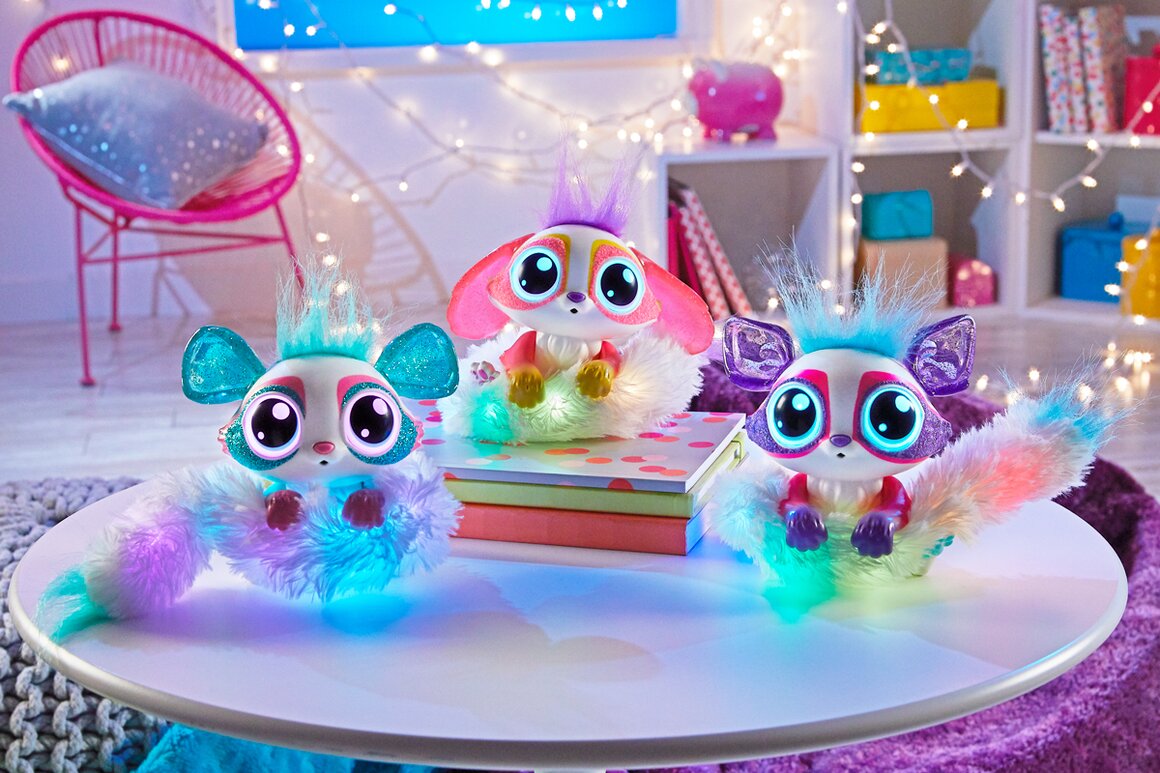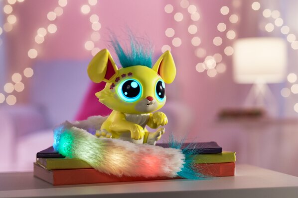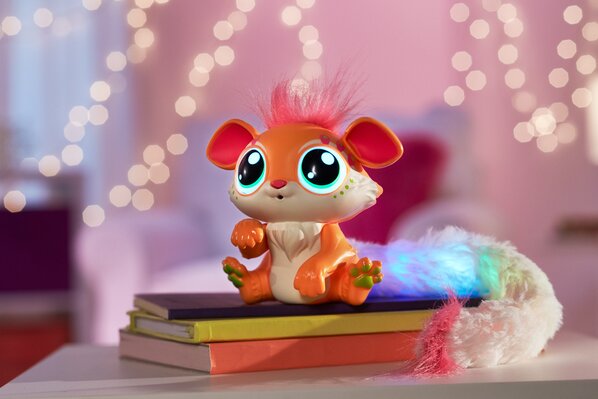 The adorable interactive toys that light up fun and friendship with their light-up tails, glowing eyes and quirky sounds and phrases! They respond to touch and sound with over 100 reactions to discover!