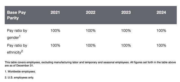 Maintain 100% pay parity for employees performing similar work with comparable roles and experience in similar markets